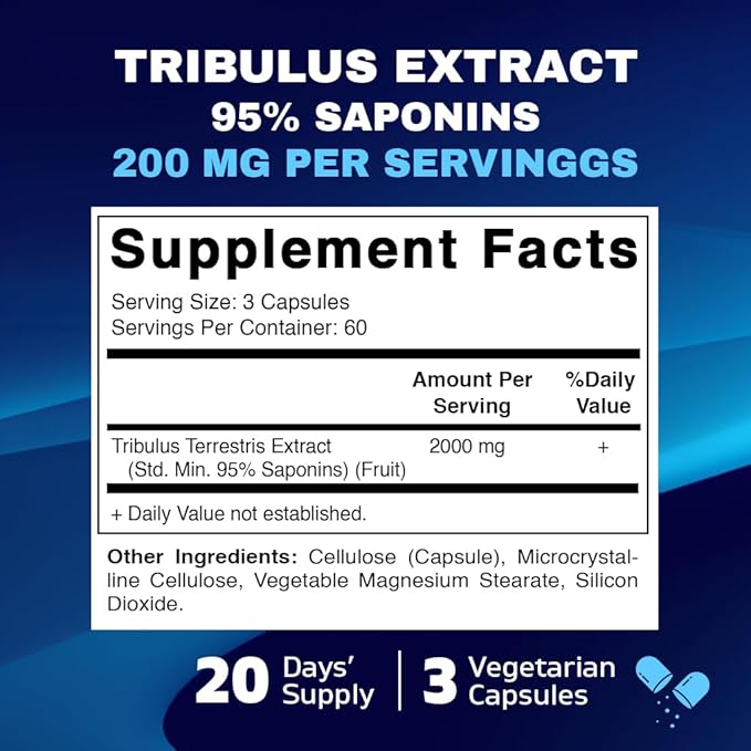 - Made with Highest Strength Tribulus Extract Containing 95% Saponins