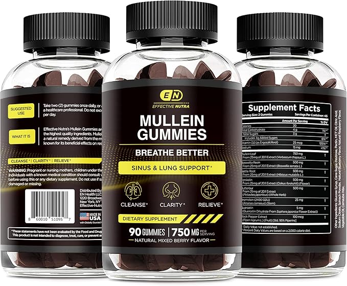 - HEALTHY & DELICIOUS: Yes, we did it! At Effective Nutra we want to provide a healthy and enjoyable experience. Our mullein supplement gummies are naturally berry flavored. With no artificial colors or flavors, you can be sure you’re getting the most nourishing health gummies out there!*