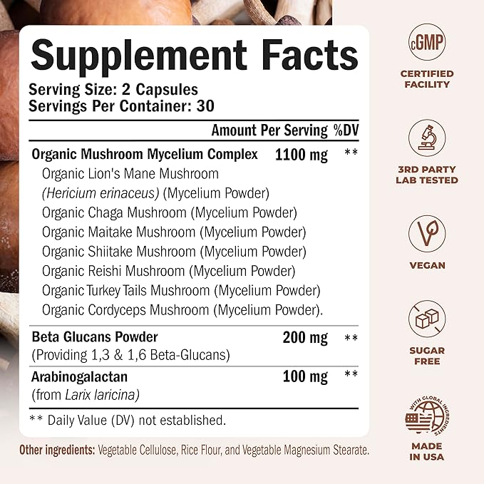 - YEAR-ROUND IMMUNE SUPPORT. While Mushrooms naturally contain Beta-glucans and Arabinogalactans, we've enriched our blend with extra of these potent immune-stimulating compounds. With regular use, you can keep your immune system firing all year long.*