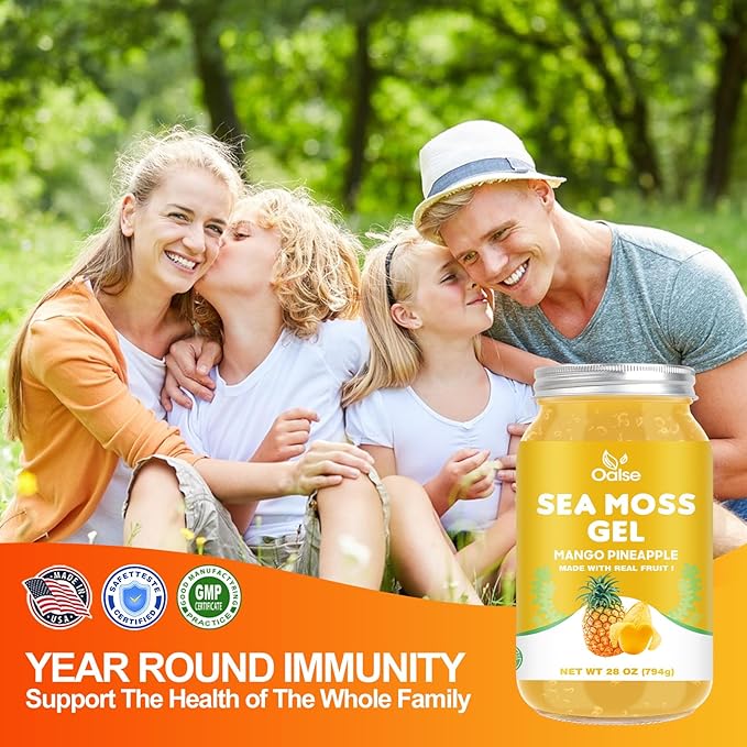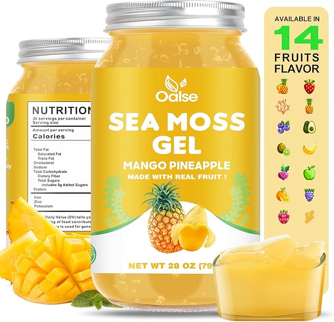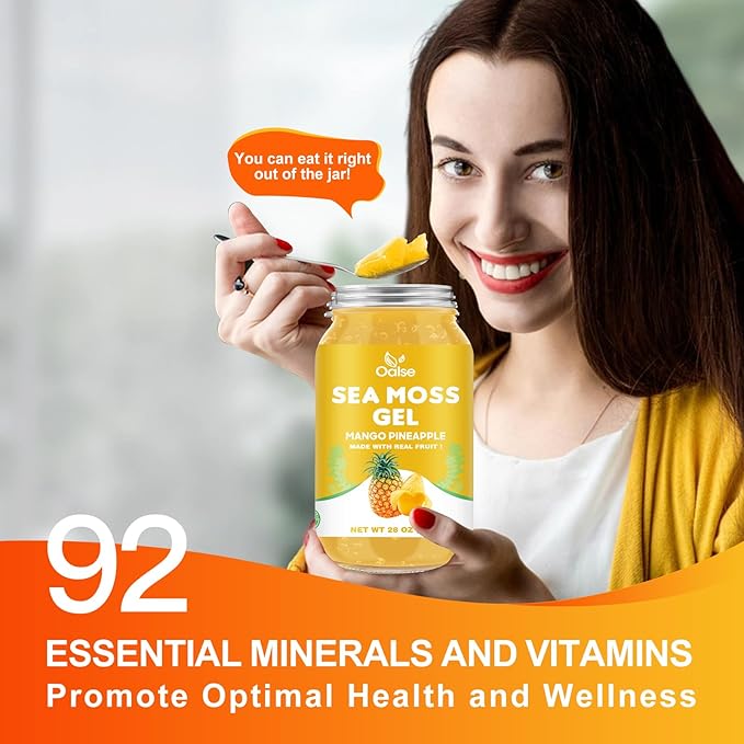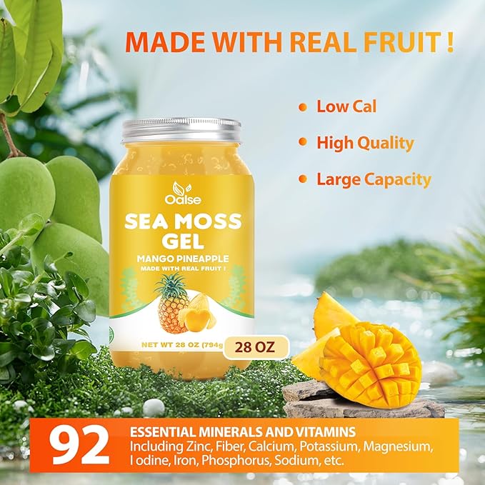 (28OZ Irish Sea Moss Gel Mango Pineapple Flavor - Natural Seamoss Gel with 92 Minerals and Vitamins - Non-GMO, Gluten-Free, Vegan - Immune Support