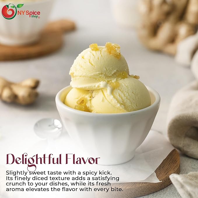 - 🍬SLIGHTLY SWEET AND SATISFYING CRUNCH - Natural Crystallized Ginger without SO2 offers a bold, slightly sweet taste with a spicy kick. Its finely diced texture adds a satisfying crunch to your dishes, while its fresh aroma elevates the flavor with every bite.