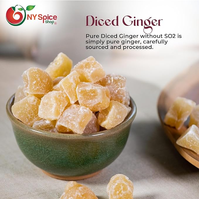 - 🌶️NY SPICE SHOP PURE DICED GINGER WITHOUT SO2 - Pure Diced Ginger without SO2 is simply pure ginger, carefully sourced and processed to ensure it's free from any added chemicals like sulfur dioxide (SO2), so you get the cleanest and most natural flavor possible.