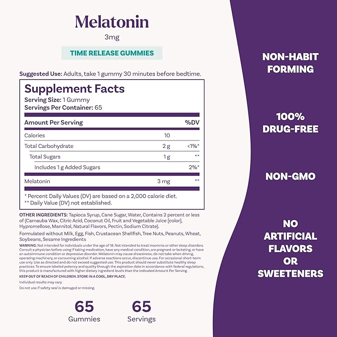 - HELPS TO MINIMIZE WAKE-UPS: These time release Melatonin 3 mg sleep gummies release melatonin through the night to help minimize wake-ups and support sustained sleep(1)