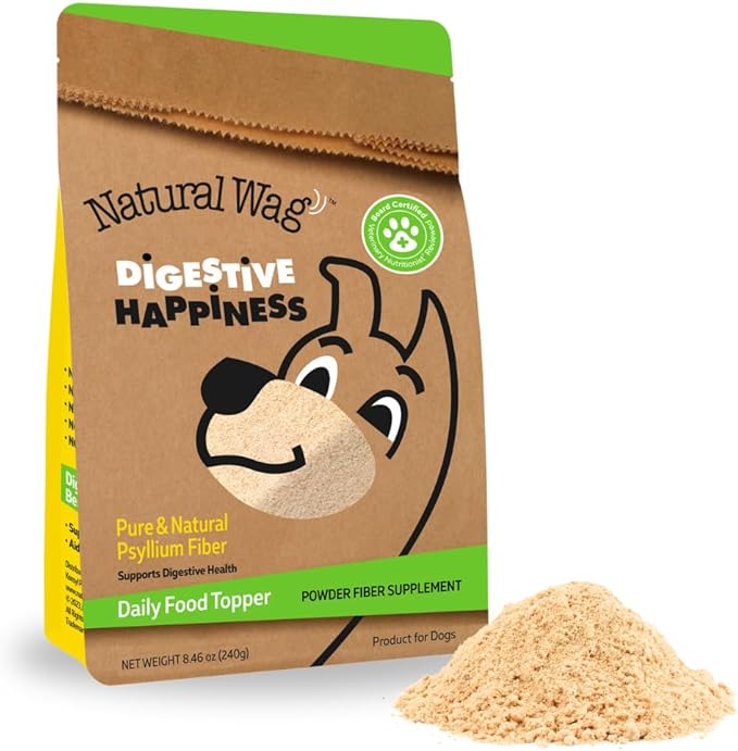 Natural Wag 100% Psyllium Fiber for Dogs – Supports Digestive Health, Relieves Occasional Constipation & Diarrhea, and Promotes Optimal Stool & Overall Wellness.