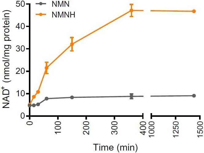 - BOOST NAD+ BY 10 TIMES: Clinical research studies show that NMNH is the most effective supplement on the market to increase NAD+ levels - even more than pure NAD+ supplements and NR (Nicotinamide Riboside). Normal NAD+ supplements can only boost NAD+ by a maximum of 40%-100%, where NMNH has been shown to boost NAD+ up to 1000%.