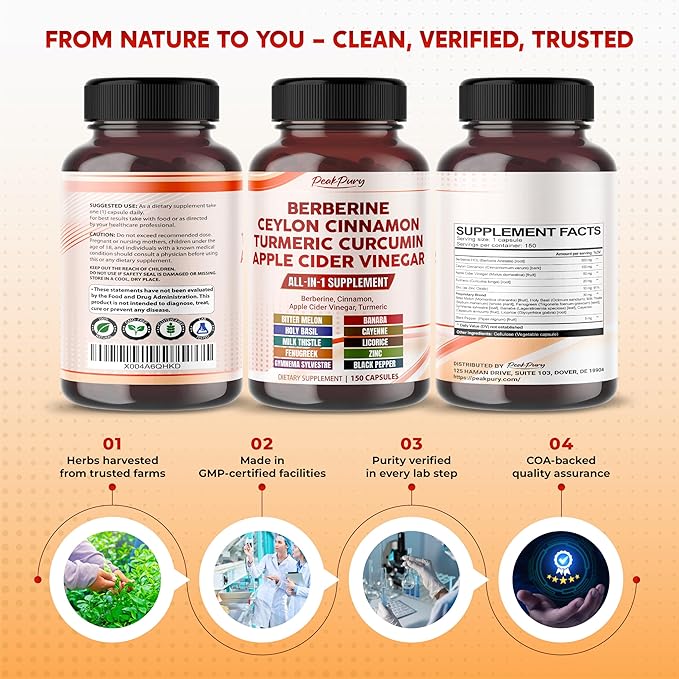 - Powerful Supplement: Crafted from quality ingredients, PeakPury Berberine supports liver and gut function, aids digestion, and boosts the immune system.