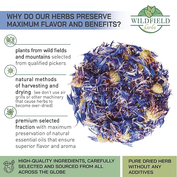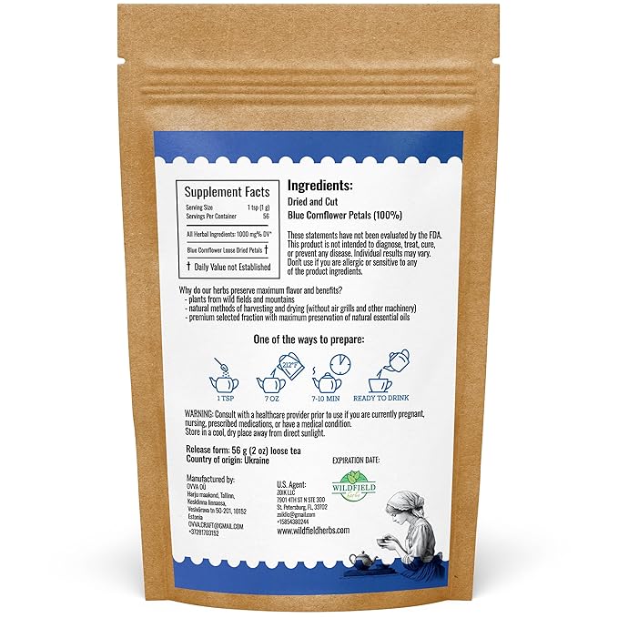 2 oz. Dried Blue Cornflower Flower Petals (Centaurea Cyanus) - 56g Blue Corn Flower Herb Tea Petals Bulk Herbal Tea