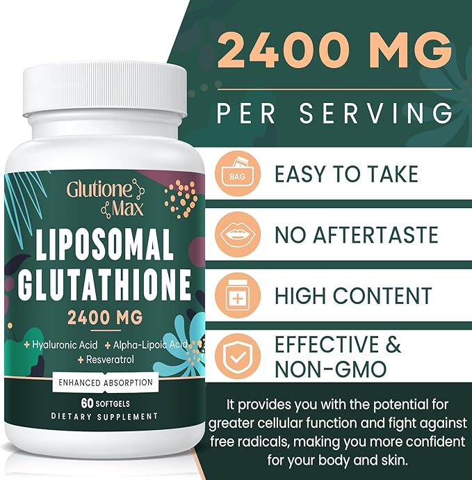 - The Master Antioxidant - As we age, glutathione levels naturally decline. Glutathione is often referred to as the body’s “master antioxidant” and is known for its role in neutralizing free radicals. Experience a radiant and clear complexion with our 2400 mg liposomal glutathione