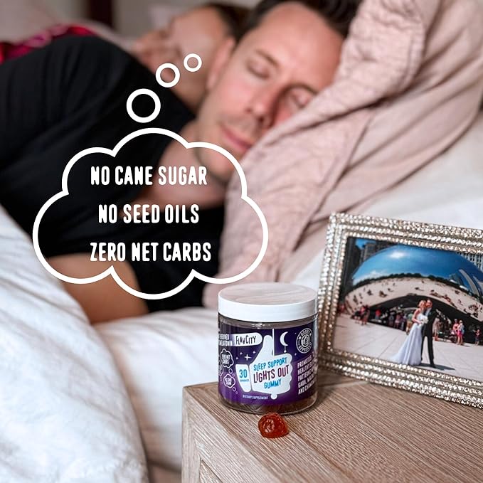 FlavCity Melatonin Sleep Gummies for Adults, Lights Out Gummy - Chewable Sleep Support Supplement with Plant-Based GABA, Magnesium & Chamomile for Deep & Restful Bedtime, 30-Day Supply