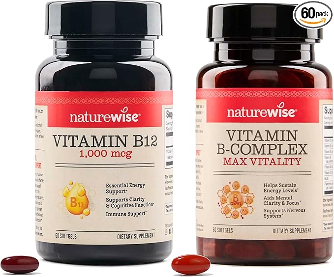 NatureWise Vitamin B12 1,000 mcg and Vitamin B Complex for Cellular Energy, Mental Clarity, Maximum Vitality - 60 Softgels Each
