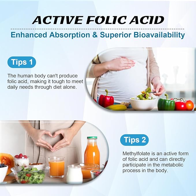 - Active Form of Folate: L-Methylfolate, a highly absorbable folate form, converts efficiently into the body's active, required form. Thanks to its superior bioavailability, it ensures enhanced absorption and effectiveness. Zetelixia's supplement contains 15 mg of 5-MTHF and methylated B12, making it a great option for people with methylation issues