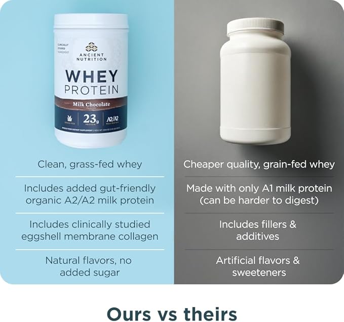 - Powerful Protein Blend: Each scoop delivers 23g of protein, combining grass-fed whey, regenerative A2/A2 milk protein, and clinically studied eggshell membrane collagen for building strength and healthy joint support.