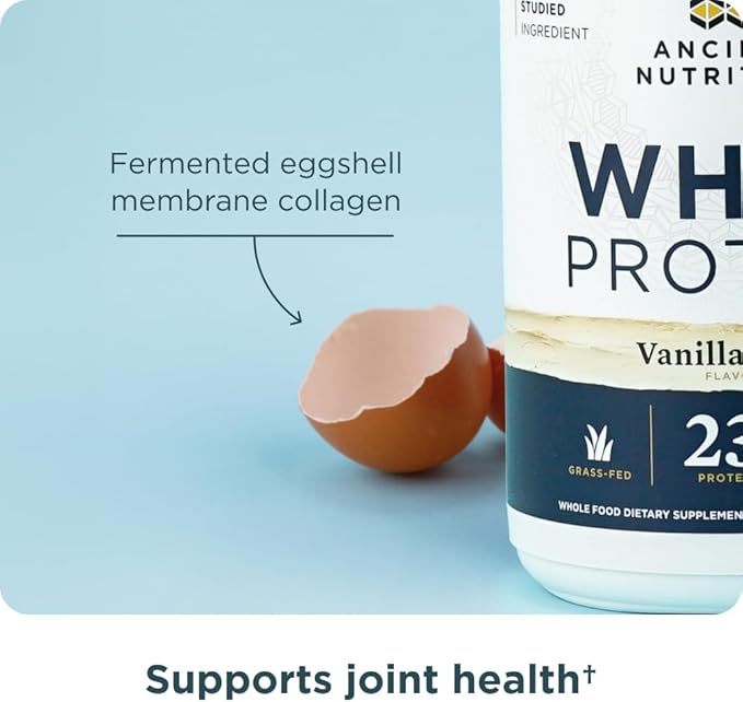 Ancient Nutrition Grass Fed Whey Protein, Vanilla Bean, 23g Protein, 20 Servings, Hydrolyzed Collagen Peptides, Organic Regenerative A2/A2 Milk Protein