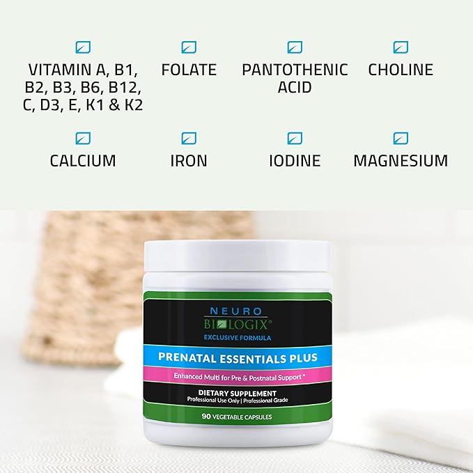 Neuro biologix Prenatal Essentials Plus, Pre and Post-Natal Vitamins for Women, Multivitamin with Iron and Methyl folate, Enhanced Methylation, 90 Capsules