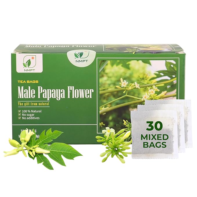 NMPT Dried Papaya Flower Tea, Mixed Bag, Carica Papaya Flower & Celastrus Hindsii Tea, Organic Herbal Tea, 30 Count, Gluten Free, Dairy Free, Sugar Free, Energy Boost & Health Support