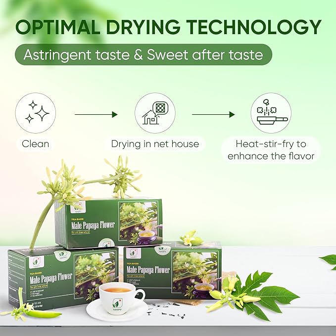 - βοΈπ©ππππ‘ πππ₯πππ π§ππ - Made entirely from naturally dried carica papaya flowers and dried celastrus hindsii leaves. They contain no sugar, additives, artificial fragrant, or colors.