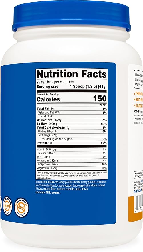 Nutricost Grass-Fed Whey Protein Isolate (Chocolate Peanut Butter) 2LBS - Non-GMO, Gluten Free, Natural Flavors