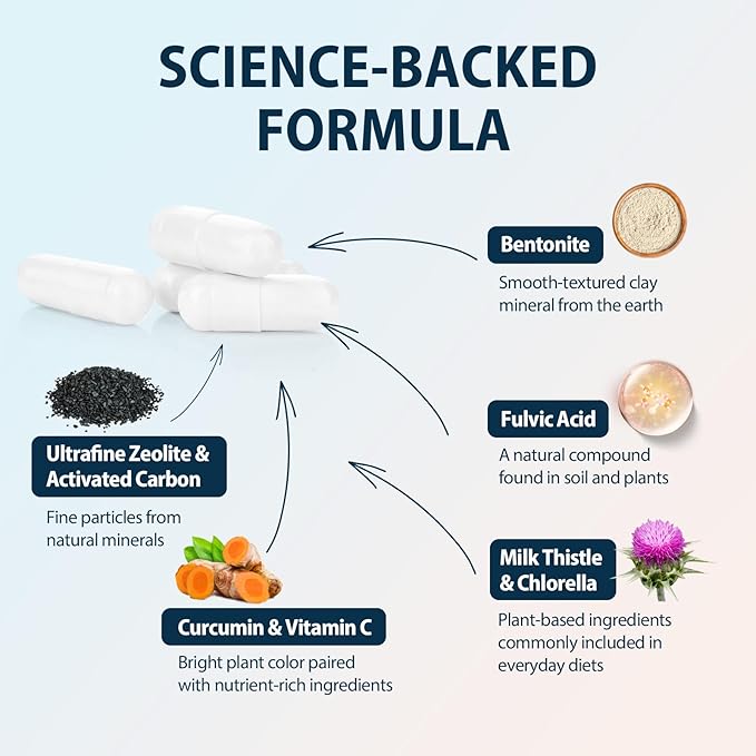 - High Concentration, Powerful Detox: Each serving delivers a robust 2300mg blend of ultra-fine 1-2 µm zeolite clinoptilolite, activated charcoal, bentonite clay, milk thistle extract, curcumin, and chlorella for an unparalleled full-body detox experience