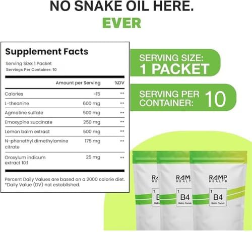 B4 - Supplement - Available in 6 Flavors - L-Theanine, Lemon Balm Extract, and More - 10 Count (10 Packets, Citrus Smooth)