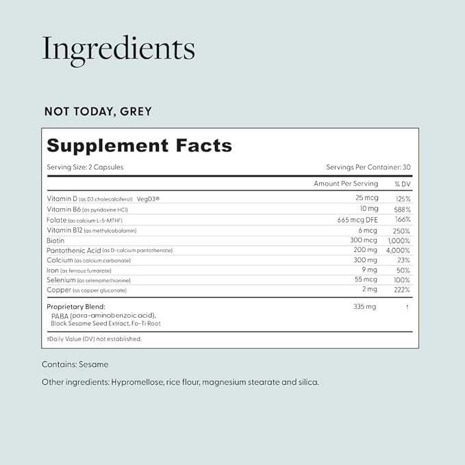 - SLOW GREY HAIR IN 3-6 MONTHS: Not Today, Grey helps with hair repigmentation, delivering a powerful blend of vitamins, minerals, and antioxidants to slow down the progression of grey hair.