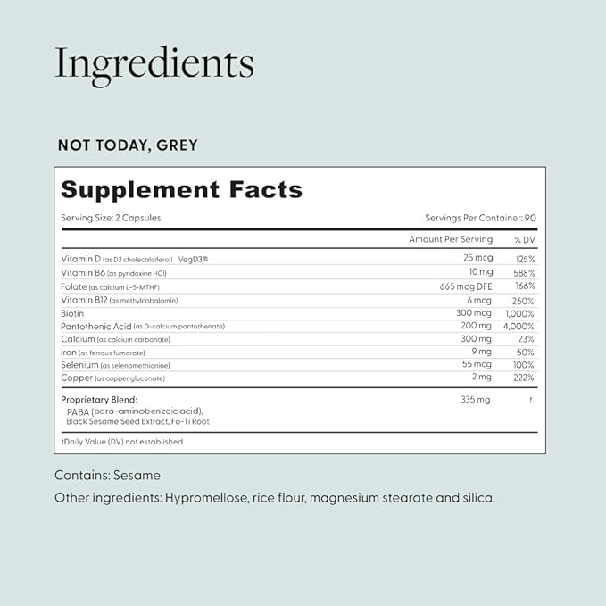 Not Today, Grey Daily Hair Supplement | Slows Grey Hair Growth & Repigment | Promotes Healthier, Thicker Hair | Biotin, B +D Vitamins & Proprietary Complex | Vegan & Gluten Free (3 Month Supply)