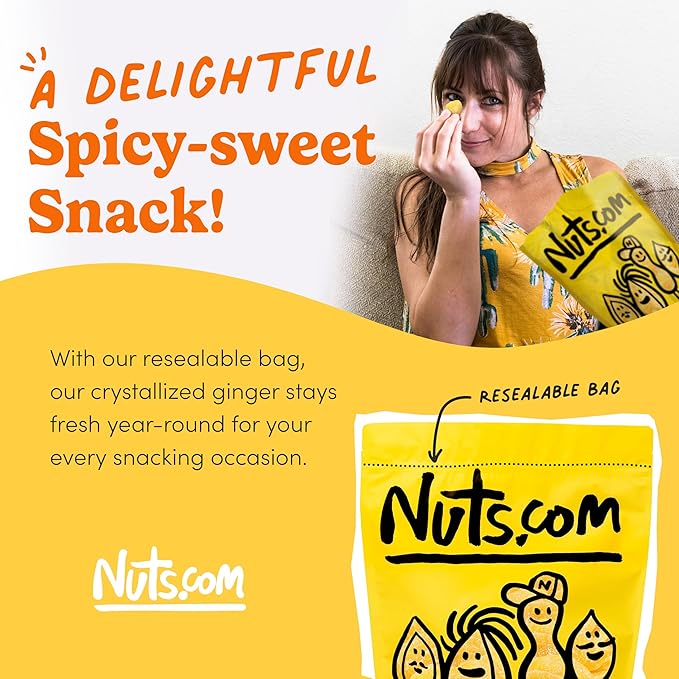 Nuts.com Crystallized Ginger Pieces - Premium Crystallized Ginger Slices - Spicy & Sweet Candied Ginger Pieces - Dried Ginger Chunks, Root - Digestive Snack Crystalized Ginger Pieces (2 lbs)