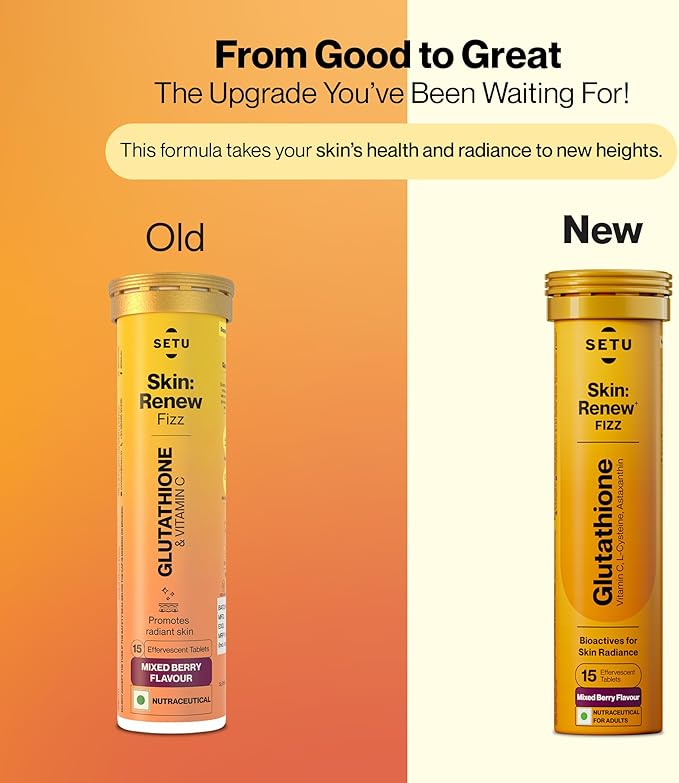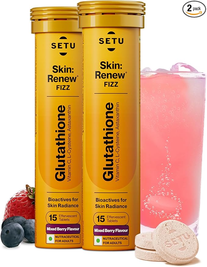 - 𝟴-𝗜𝗡-𝟭 𝗕𝗟𝗘𝗡𝗗 𝗢𝗙 𝗦𝗘𝗧𝗨 𝗦𝗞𝗜𝗡 – Setu Skin: Renew combines 500 mg of glutathione with vitamin C, L-cysteine, astaxanthin, niacinamide, biotin, zinc, and grape seed extract to provide daily antioxidant support and essential nutrients. These effervescent tablets dissolve quickly in water for convenient use and help maintain the normal function of skin as part of a balanced wellness routine.