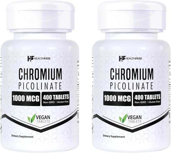 Chromium Picolinate 1000mcg | Pack of 2 | 400 Tablets Each | Gluten-Free | Non-GMO | Made in USA