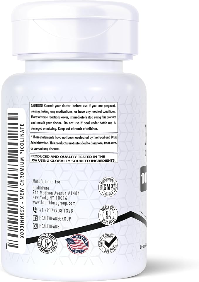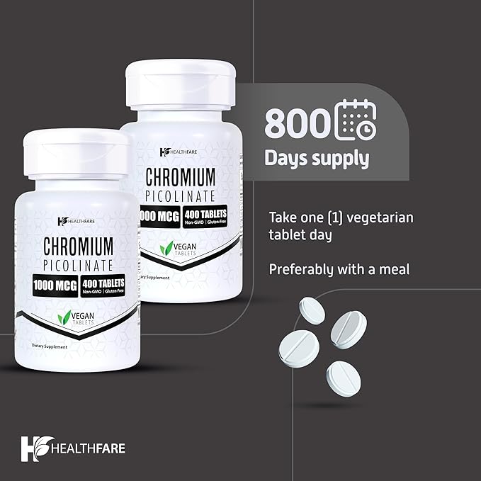 - POTENT FORMULA: Each tablet contains 1000mcg of Chromium Picolinate, a highly bioavailable form of chromium.