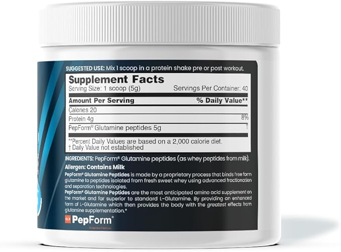 - MOST BIOAVAILABLE GLUTAMINE FORM: PepForm Glutamine Peptides may be absorbed faster and provide greater effects than standard L-Glutamine.