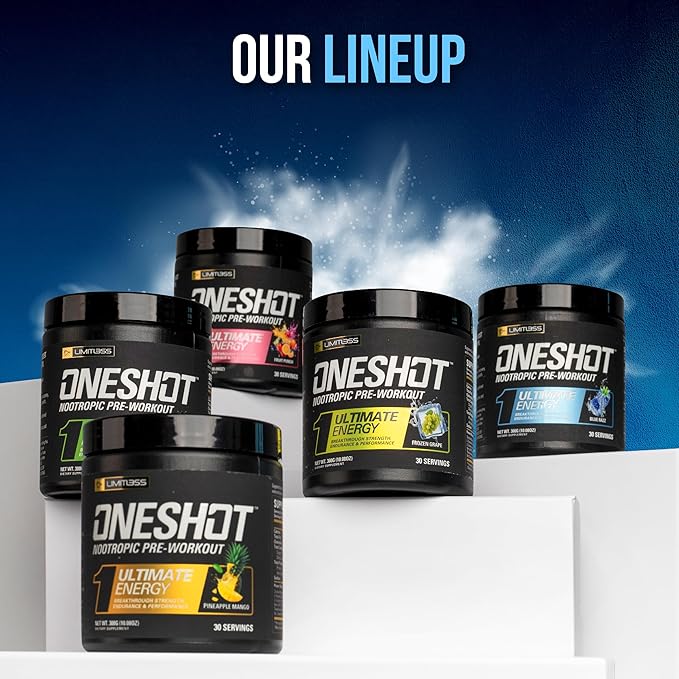 Oneshot Pre Workout Powder for Men and Women - BCAAS Amino Acids Supplement Powder, 200mg Caffeine, Beta Alanine Powder, Citrulline Malate Preworkout Powder - Blue Razz - 30 Servings