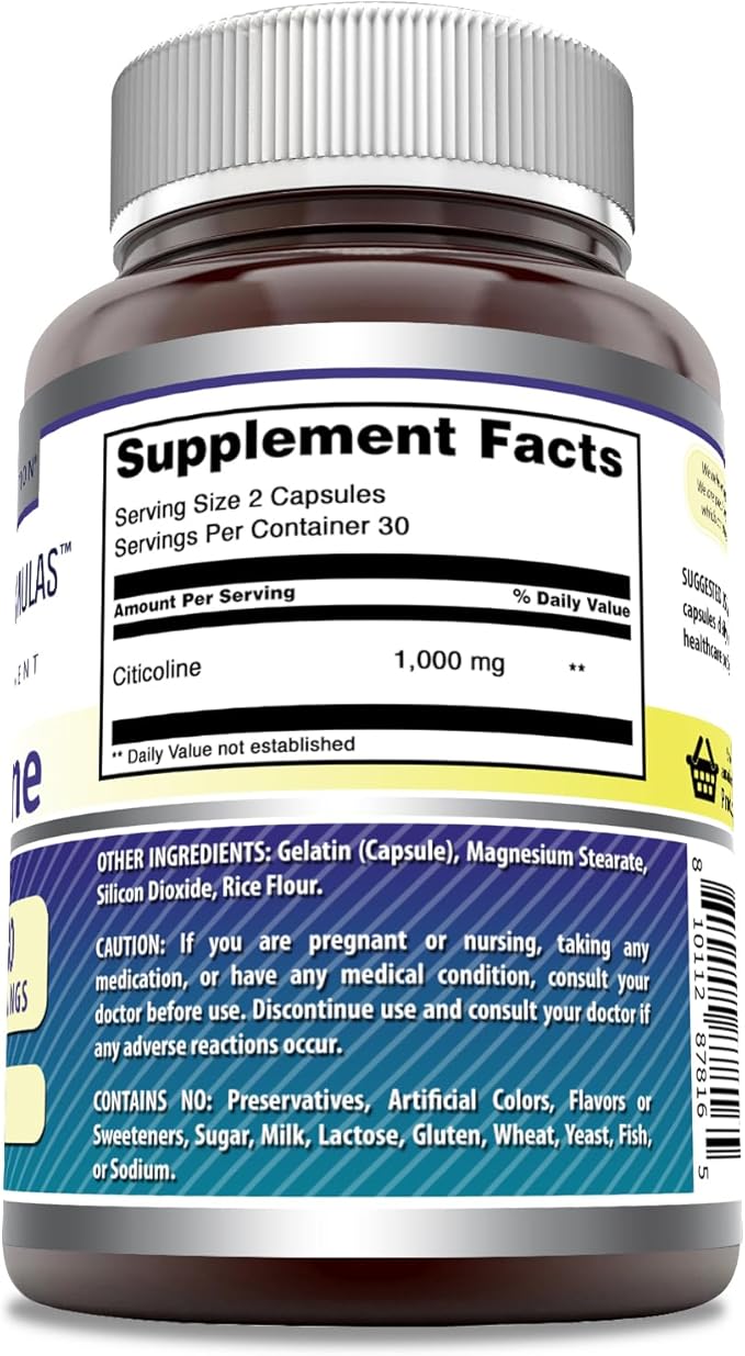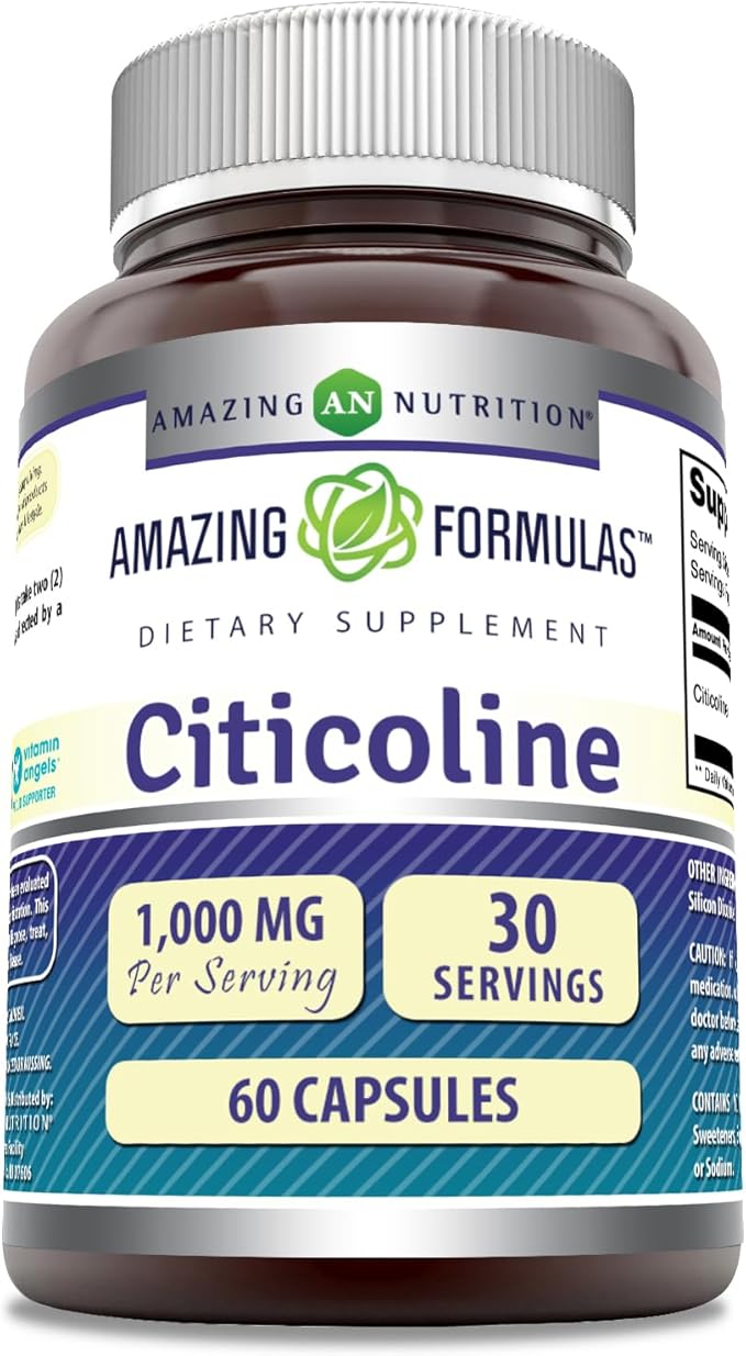 Amazing Formulas Citicoline Supplement | 1000 Mg Per Serving | Capsules | Non-GMO | Gluten-Free | Made in USA (1 Pack, 60 Count)