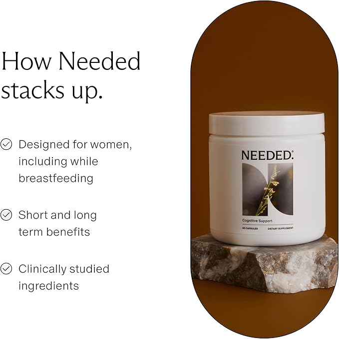 Needed. Cognitive Support - Comprehensive Supplement with Ashwagandha, Reishi & Lion's Mane Mushrooms, Breastfeeding Safe - Supports Focus, Attention, & Memory, 30-Day Supply