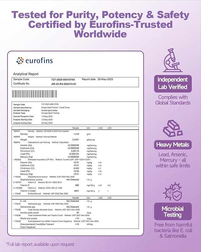 - Safety Ingredients: We prioritize your safety by excluding common allergens such as yeast, wheat, milk, eggs, gluten, soy, peanuts, shellfish, and dairy. Additionally, our grape seed extract drops contains no artificial sweeteners, colors, flavors, or preservatives