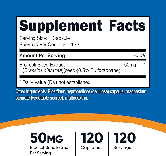 - Concentrated Broccoli Extract: Each serving delivers 50 mg of broccoli seed extract in a convenient capsule form.