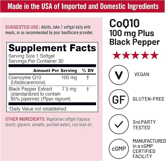 - 3rd PARTY TESTED, USA MANUFACTURED: NatureWise CoQ10 + Black Pepper softgels are 3rd party tested for purity and efficacy and manufactured in the USA with clean, high-quality ingredients in a cGMP-certified facility.