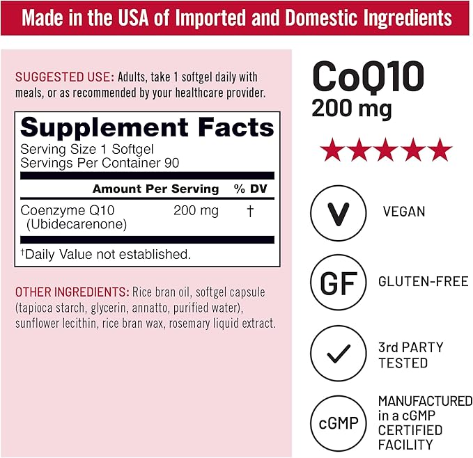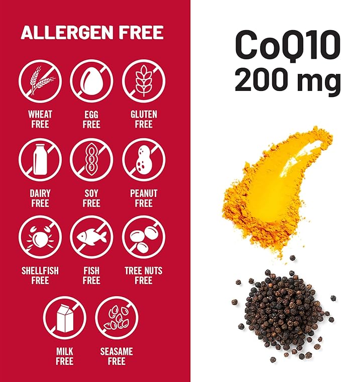 - VEGAN, NON-GMO, GLUTEN-FREE: NatureWise CoQ10 200mg Softgels are vegan, gluten-free, non-GMO, and do not contain wheat, eggs, soy, milk, tree nuts, peanuts, fish, shellfish, or sesame.
