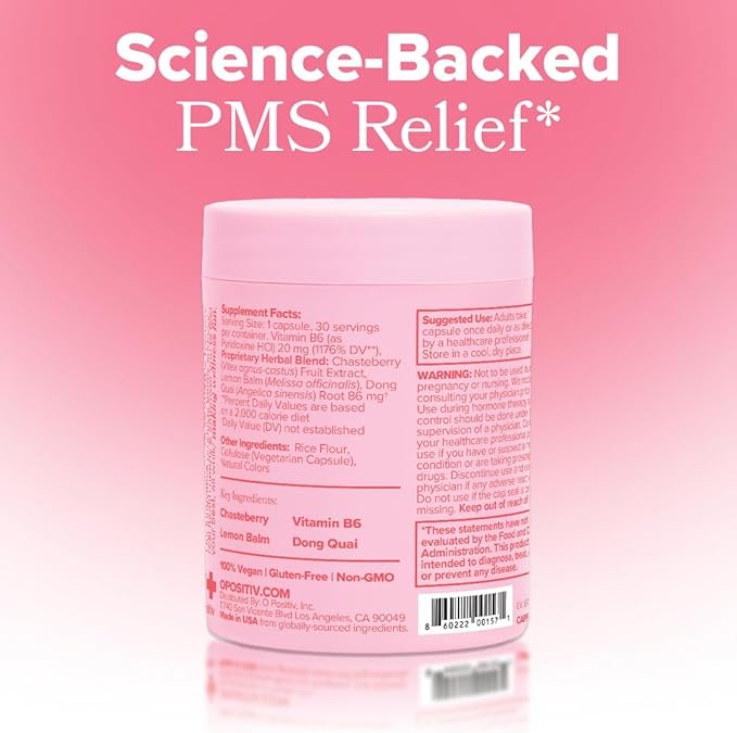 O Positiv FLO PMS Vitamins for Women, 30 Servings (Pack of 3) - Proactive PMS Relief - Targets Hormonal Breakouts, Bloating, Cramps, & Mood Swings with Chasteberry, Vitamin B6, & Lemon Balm