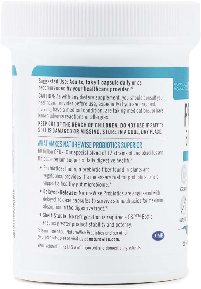 - 3rd PARTY TESTED, QUALITY ASSURED: NatureWise 60 Billion CFU Probiotics are 3rd party tested for purity and efficacy and manufactured in the USA with high-quality ingredients from around the world in a cGMP-certified facility.