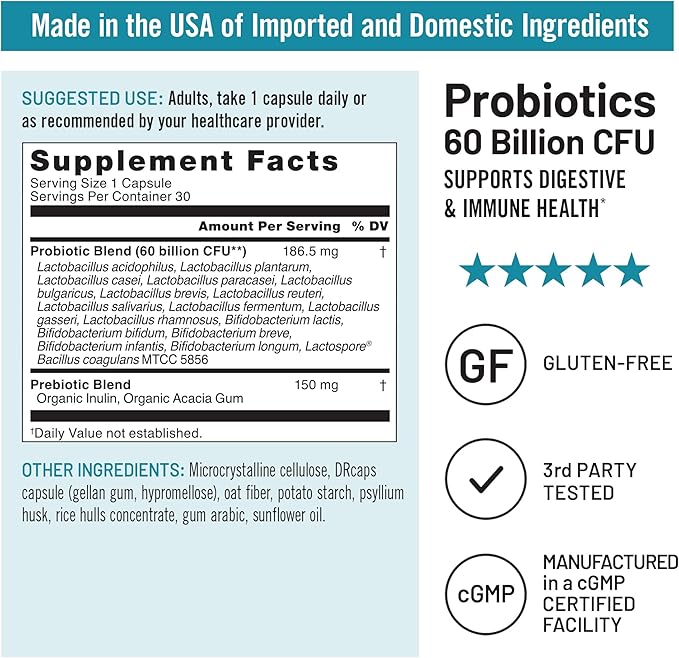 - POWERFUL GUT SUPPORT: Our high-potency probiotic offers 60 billion colony-forming units (CFUs) of 17 unique strains to support your daily digestion, gut health and immune health.*