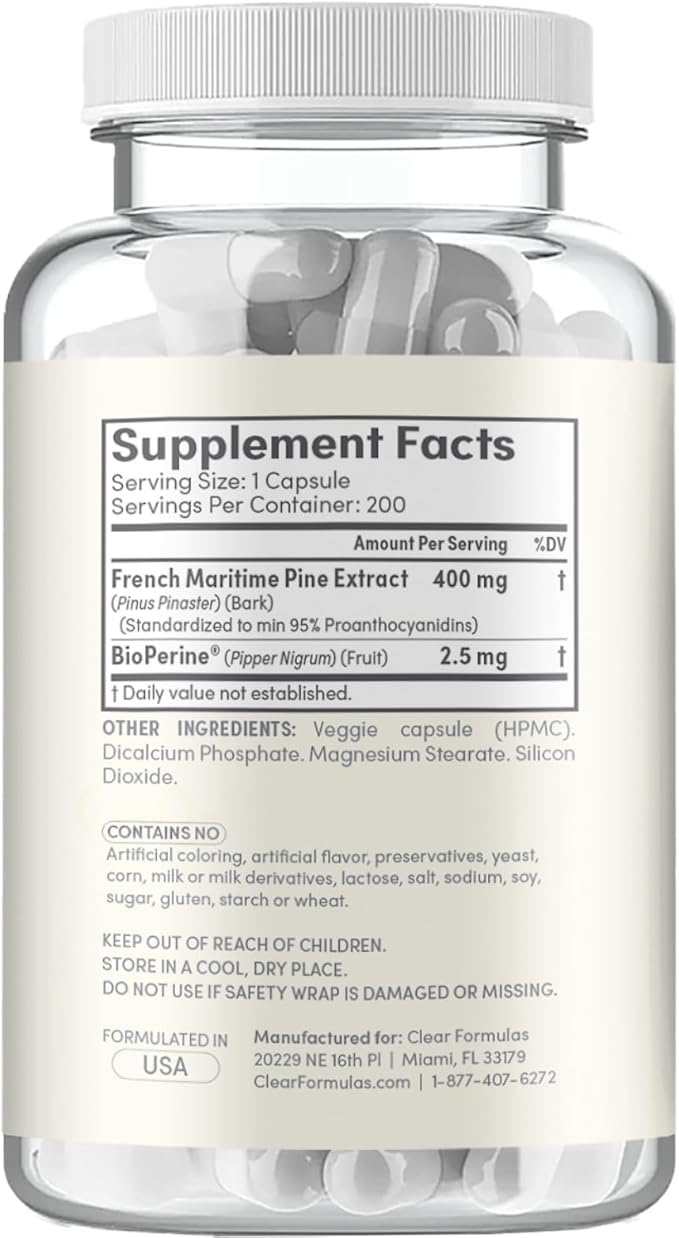 - Precision Dosage: Our 400mg pinus pinaster extract supplements are made with 95% proanthocyanidins and with black pepper extract to enhance absorption so you get more out of every capsule