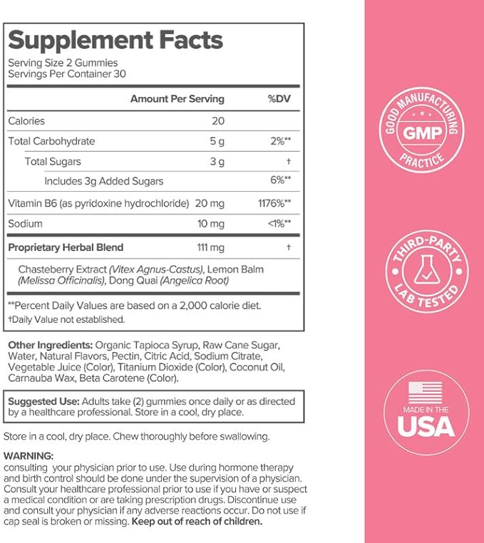 - Primary Supplement Type : Chasteberry, Lemon Balm, Vitamin B6