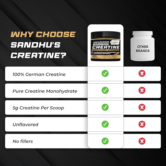 - SANDHUโS GERMAN CREATINE: Experience the power of Creatine Monohydrate with Sandhuโs German Creatine. Our creatine monohydrate powder supplement will be perfect for your workout routine, ๐๐๐ฝ๐ฝ๐ผ๐ฟ๐๐ถ๐ป๐ด ๐ฝ๐ฒ๐ฟ๐ณ๐ผ๐ฟ๐บ๐ฎ๐ป๐ฐ๐ฒ, ๐ฒ๐ป๐ฑ๐๐ฟ๐ฎ๐ป๐ฐ๐ฒ, ๐น๐ฒ๐ฎ๐ป ๐บ๐๐๐ฐ๐น๐ฒ ๐บ๐ฎ๐๐ ๐ฎ๐ป๐ฑ ๐๐ถ๐๐ฎ๐น๐ถ๐๐.* It delivers 5,000 mg of Creatine Monohydrate per serving in one scoop!