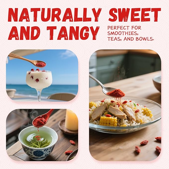 - Convenient Nutrition Anytime: Enjoy the benefits of goji berries in a shelf-stable powder form—easy to store, easy to use, and always ready when you need a nutrient boost.