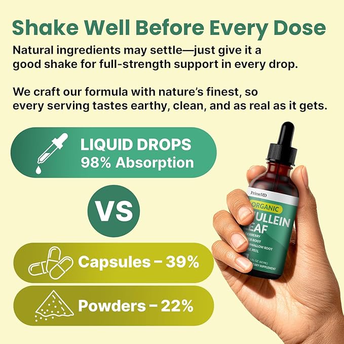 - Who is This For: Our Mullein leaf drops, combined with Echinacea, support gentle lung health. They’re formulated for daily wellness and breathing support that bring you comfort and clarity.