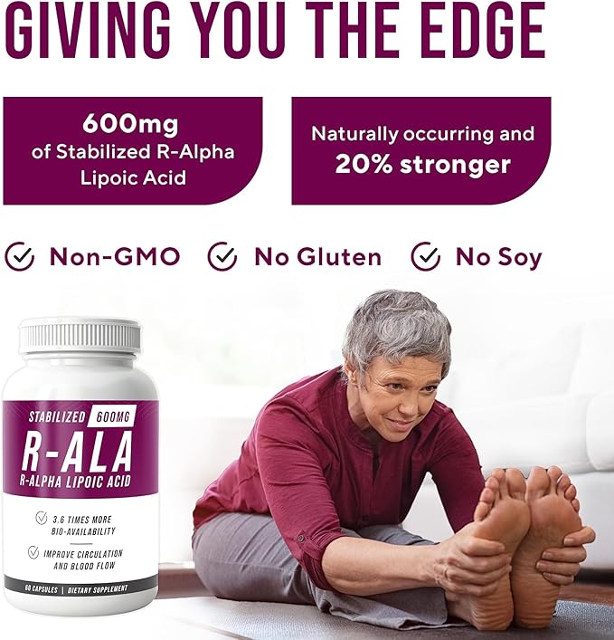 - Supercharge Your Nerve Health: Get 600mg of pure antioxidant power with R-ALA. The powerful r-alpha lipoic acid 600 mg dose promotes advanced nerve support and standout nerve repair and nourishment, ensuring targeted support for optimal nerve function.