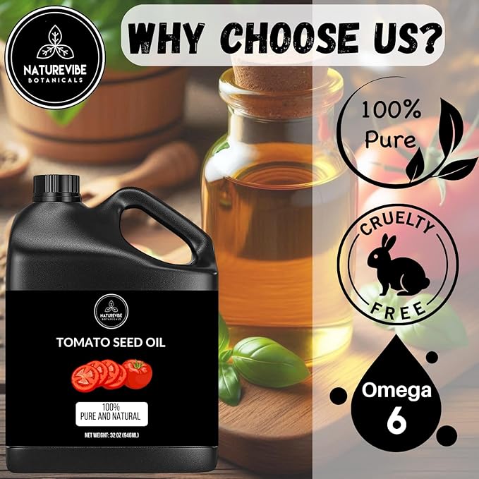 - ✅ The Naturevibe Oil is cold-pressed Tomato seed oil that is 100% pure, free from fillers or additives. It can be used as a hair and body oil to potentially improve skin health.