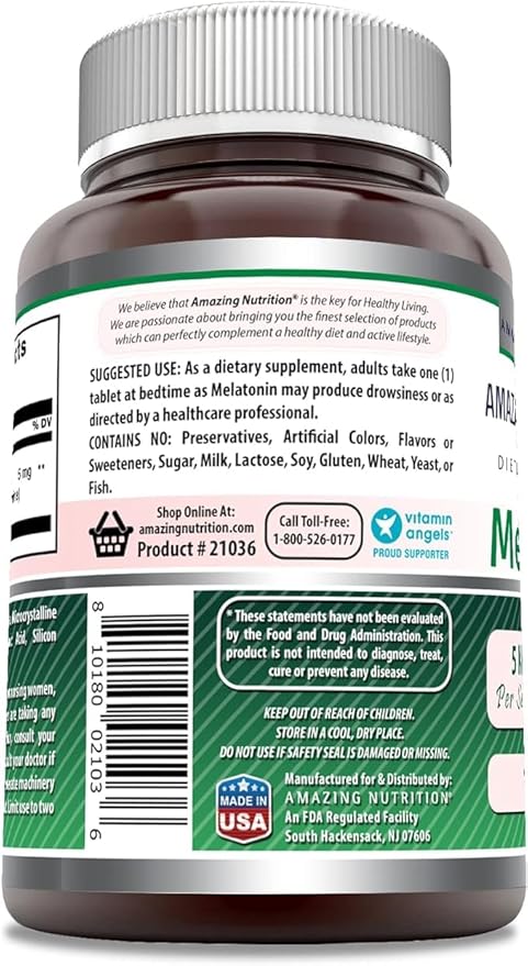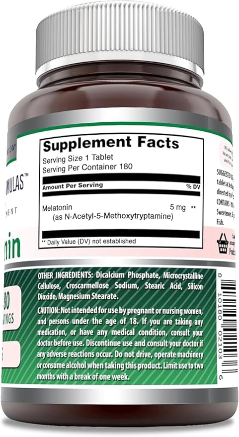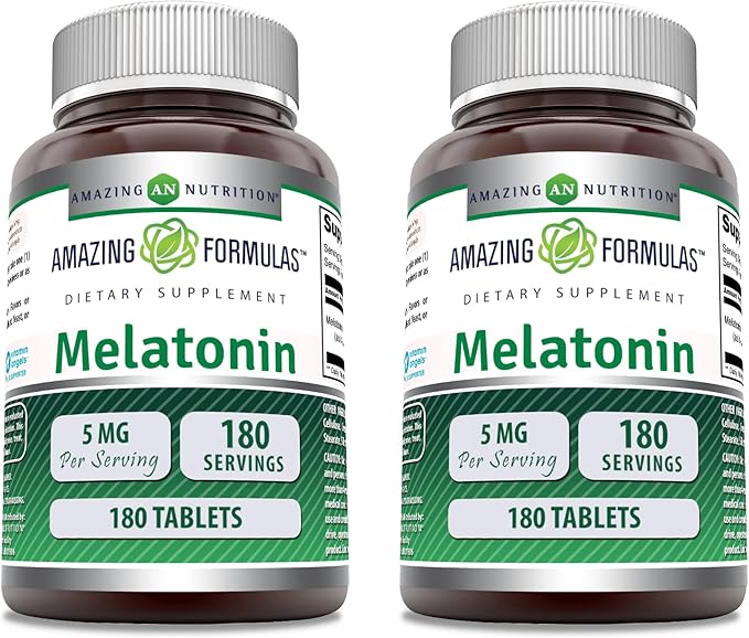 Amazing Formulas Melatonin Supplement | 5 Mg Per Serving | 180 Tablets | Non-GMO | Gluten Free | Made in USA | Pack of 2