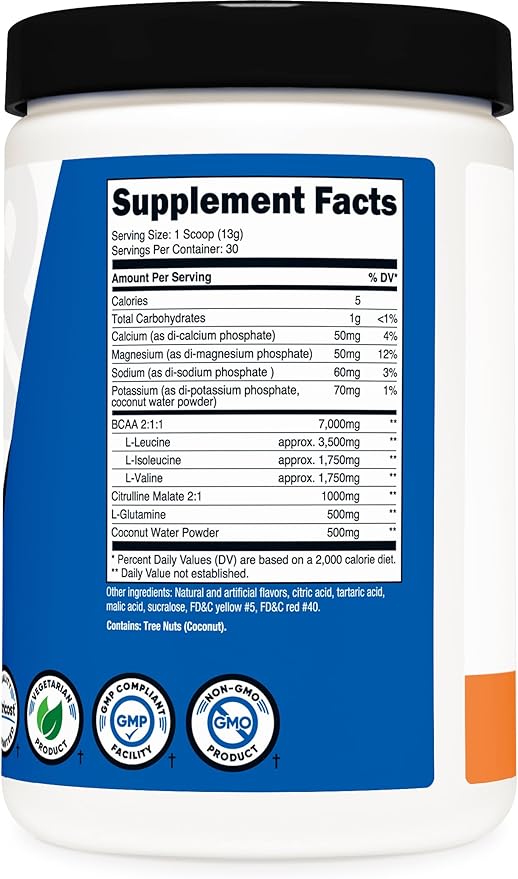 - Quality Assurance: Manufactured in an NSF Certified GMP Compliant facility and rigorously tested by independent ISO-accredited laboratories, Nutricost's BCAA + Hydration guarantees the highest standards of quality and purity. Elevate your workouts with a delicious blend of hydration and BCAA support.