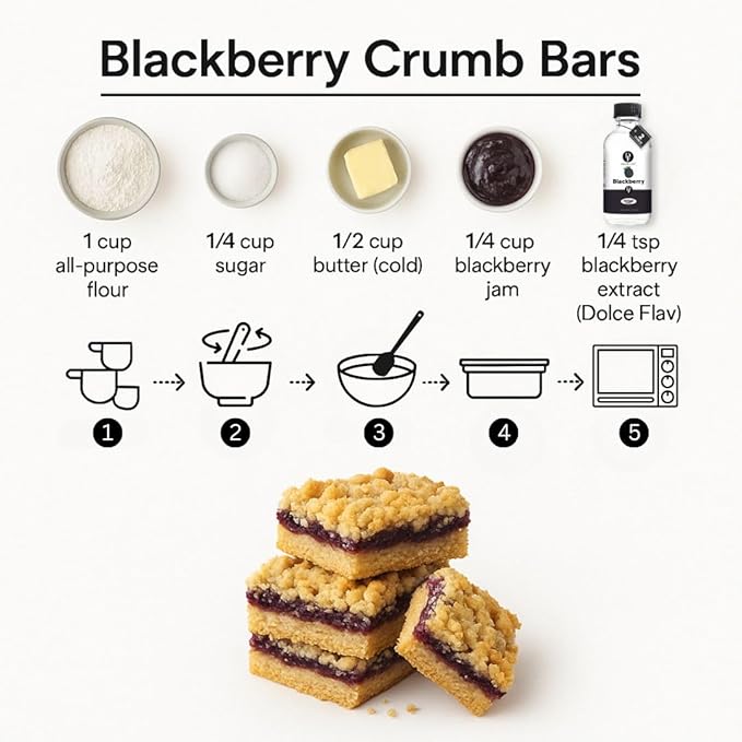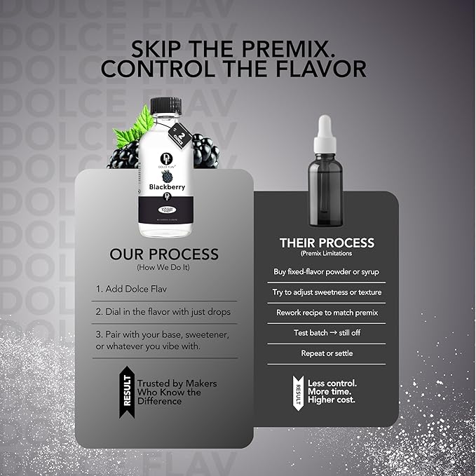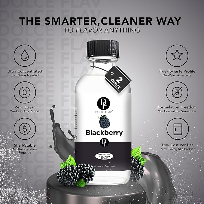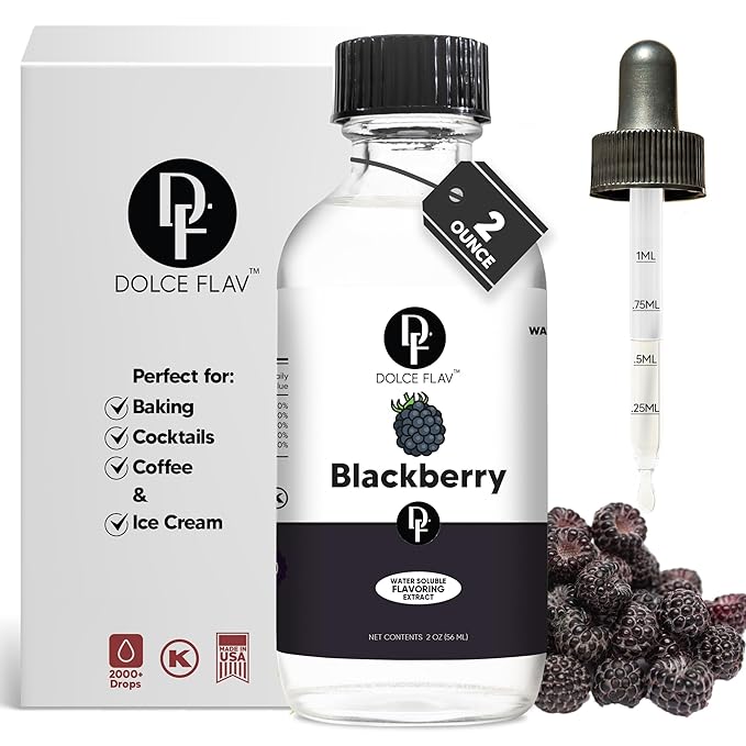 - Elevate Your Baking Adventure – Enhance your baking creations with Dolce Flav's water-based, unsweetened blackberry extract flavoring. Infuse a touch of fruity elegance into your everyday recipes, transforming your culinary experience into something extraordinary.